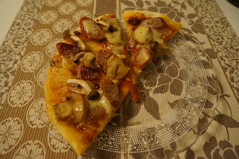 仕上がりの画像取り忘れてて食べかけのピザです。(わりと冷めた状態